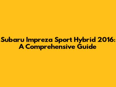 Unveiling the 2016 Subaru Impreza Sport Hybrid: Key Features and Specifications