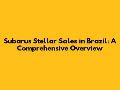 Subaru's Stellar Sales In Brazil: A Comprehensive Overview