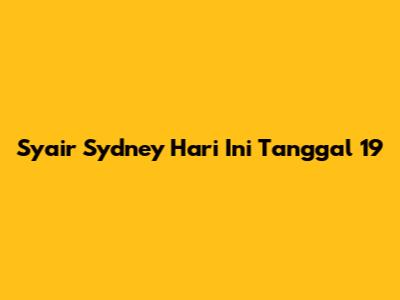 Syair Sydney Hari Ini: Tanggal 19 - Update Harian!