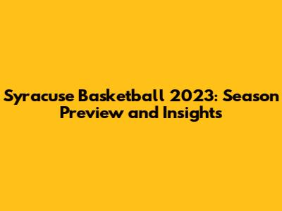 Syracuse Basketball 2023: Season Preview And Insights