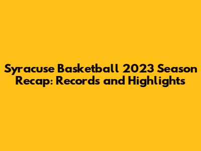 Syracuse Basketball 2023 Season Recap: Records And Highlights