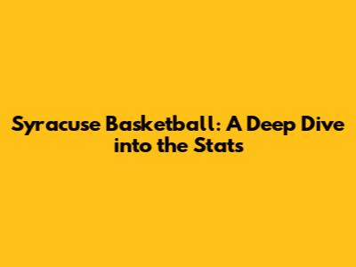 Syracuse Basketball: A Deep Dive Into The Stats