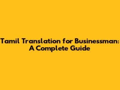 Tamil Translation For Businessman: A Complete Guide