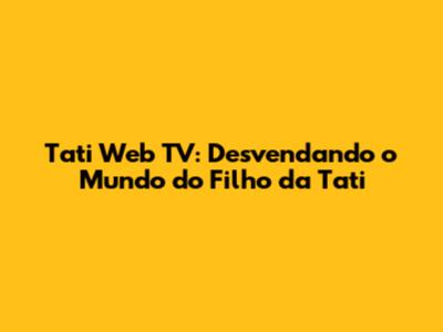 Tati Web TV: Descubra O Universo Do Filho Da Tati
