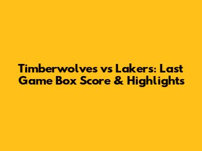 Timberwolves Vs Lakers: Last Game Box Score & Highlights