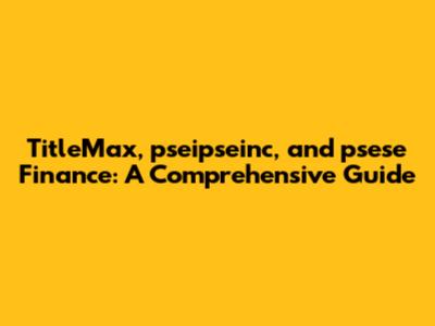 TitleMax, Pseipseinc, And Psese Finance: A Comprehensive Guide