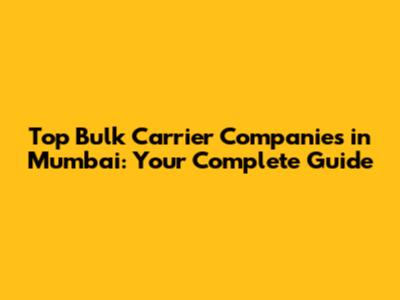 Top Bulk Carrier Companies In Mumbai: Your Complete Guide