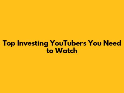 Top Investing YouTubers You Need To Watch