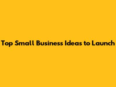 Top Small Business Ideas To Launch
