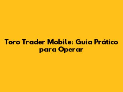 Toro Trader Mobile: Guia Prático Para Operar