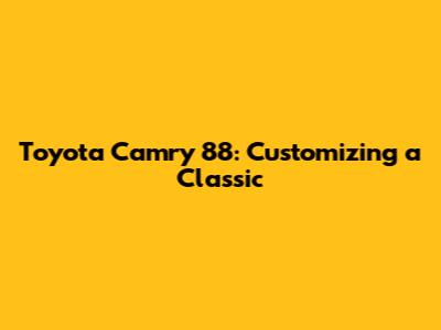 Toyota Camry 88: Customizing A Classic