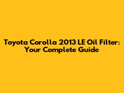 Toyota Corolla 2013 LE Oil Filter: Everything You Need To Know