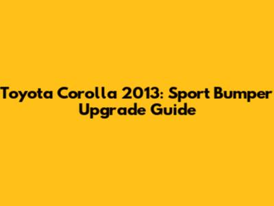 Toyota Corolla 2013: Sport Bumper Upgrade Guide