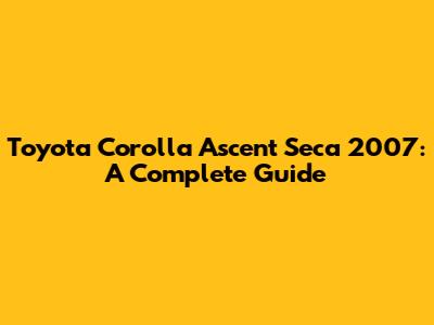 Toyota Corolla Ascent Seca 2007: A Complete Guide