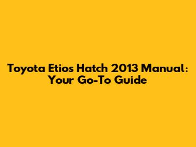 Toyota Etios Hatch 2013 Manual: Your Go-To Guide