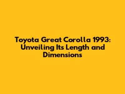 Hey guys! Ever wondered about the exact length of a Toyota Great Corolla 1993? You're not alone! This classic car still turns heads, and understanding its dimensions, especially its length, is super useful, whether you're trying to squeeze it into a tight parking spot, planning some modifications, or just satisfying your curiosity. So, let's dive into the specifics of the Toyota Great Corolla 1993 and explore its length, along with other important measurements, to give you a complete picture of this iconic vehicle. Understanding the dimensions of your car is not just about knowing how much space it occupies, it's about understanding how it interacts with the world around it. Knowing the overall length can help you navigate tight city streets, judge parking spaces accurately, and even plan for storage solutions. Plus, for car enthusiasts, these details are part of the car's identity, contributing to its appeal and character. The Toyota Great Corolla 1993, with its blend of reliability and style, has earned a special place in automotive history, and knowing its dimensions is another way to appreciate its design and engineering. So, get ready to discover all the key measurements of this beloved car and gain a deeper understanding of what makes it so special. Let's get started and unravel the details that make the Toyota Great Corolla 1993 a true classic!
