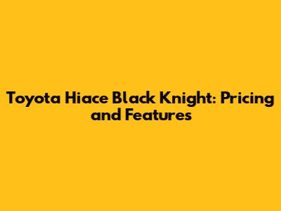 Toyota Hiace Black Knight: Pricing And Features