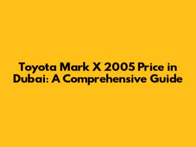 I hope this comprehensive guide helps you in your quest to find the perfect Toyota Mark X 2005 in Dubai. Good luck, and may the best car win!