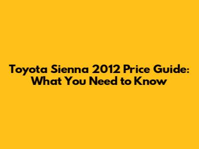 Toyota Sienna 2012 Price Guide: What You Need To Know
