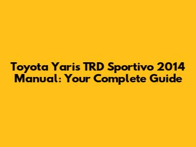 Toyota Yaris TRD Sportivo 2014 Manual: Ultimate Guide