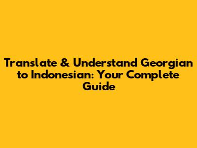 Translate & Understand Georgian To Indonesian: Your Complete Guide