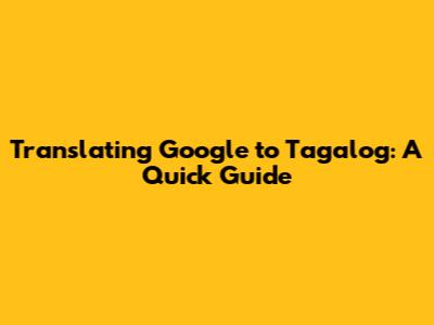 Translate Google To Tagalog: A Quick Guide