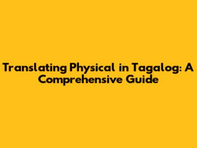 Translate Physical In Tagalog: A Comprehensive Guide