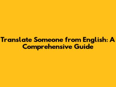 Translate Someone From English: A Comprehensive Guide