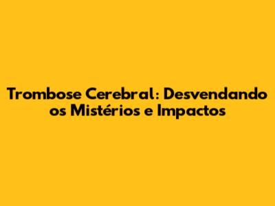 O Que Exatamente é Trombose Cerebral? Entendendo a Condição