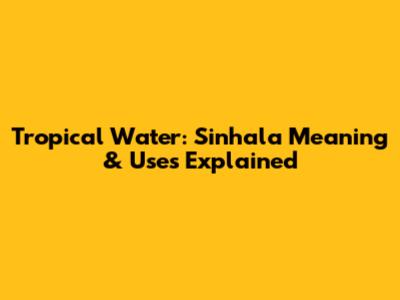 Tropical Water: Sinhala Meaning & Uses Explained