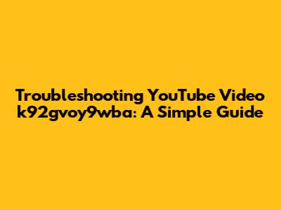 Troubleshooting YouTube Video K92gvoy9wba: A Simple Guide