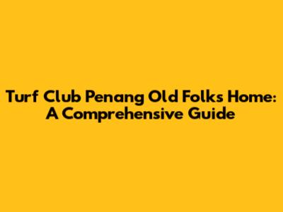 Turf Club Penang Old Folks Home: A Comprehensive Guide