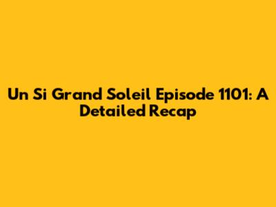 Un Si Grand Soleil Episode 1101: A Detailed Recap