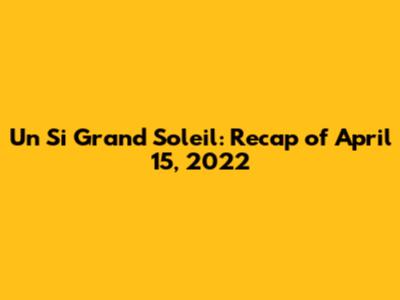 Un Si Grand Soleil: Recap Of April 15, 2022