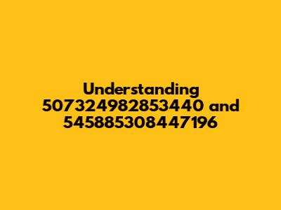\Let's dive into understanding the significance of the numbers 507324982853440 and 545885308447196. Often, seemingly random numerical sequences carry specific meanings or serve as identifiers within various systems. Whether these numbers are related to identification, encryption, or some other form of categorization, figuring out their context is key. In this article, we'll explore potential interpretations and applications of these numbers to shed light on their purpose.