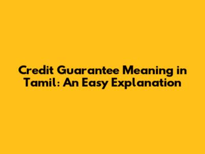 Understanding Credit Guarantees: A Tamil Guide