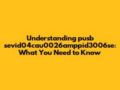 Understanding pusb sevid04cau0026amppid3006se: What You Need to Know