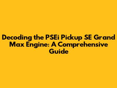 Understanding The PSEi Pickup SE Grand Max Engine