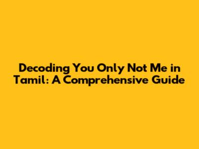 Understanding The Tamil Meaning Of 'You Only Not Me'