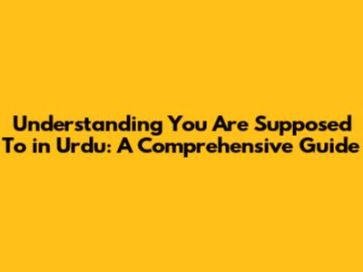 Understanding 'You Are Supposed To' In Urdu: A Comprehensive Guide