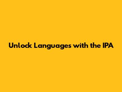 Unlock Languages With The IPA
