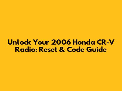 Unlock Your 2006 Honda CR-V Radio: Reset & Code Guide