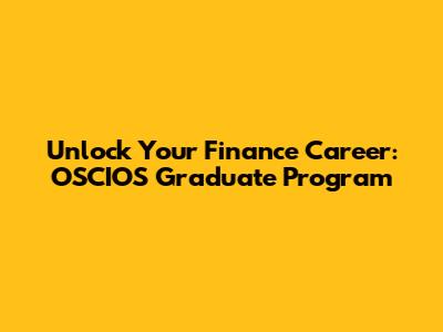 Unlock Your Finance Career: OSCIOS Graduate Program