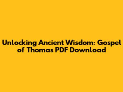 Unlocking Ancient Wisdom: Gospel Of Thomas PDF Download