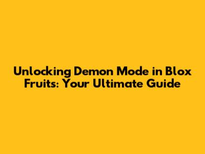 Unlocking Demon Mode In Blox Fruits: A Comprehensive Guide