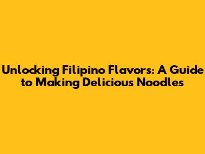 Unlocking Filipino Flavors: A Guide To Making Delicious Noodles