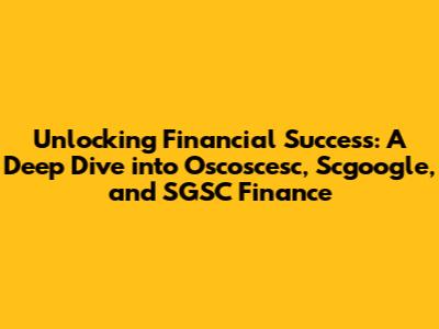 Unlocking Financial Success: A Deep Dive Into Oscoscesc, Scgoogle, And SGSC Finance