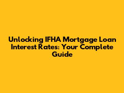 Unlocking IFHA Mortgage Loan Interest Rates: Your Complete Guide