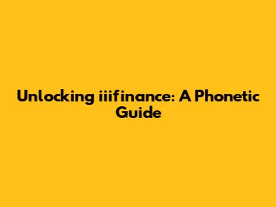 Understanding the Basics: iiifinance Phonetic Breakdown