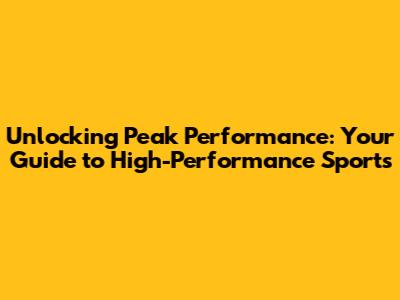 Unlocking Peak Performance: Your Guide To High-Performance Sports